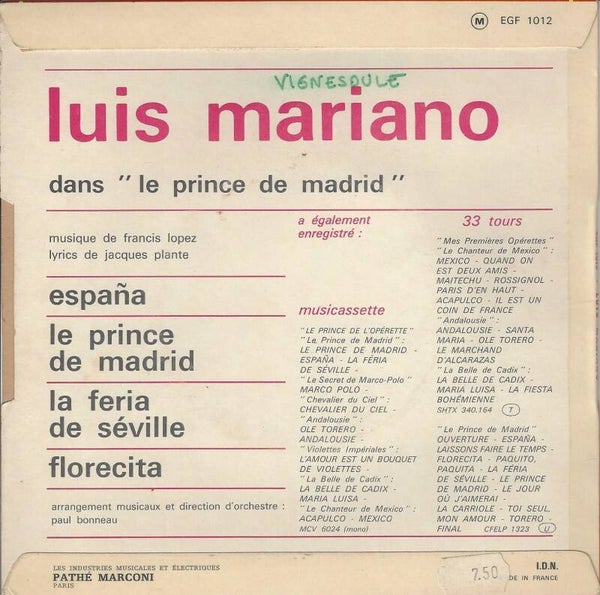 Luis Mariano - B.O.F Le Prince de Madrid 1968